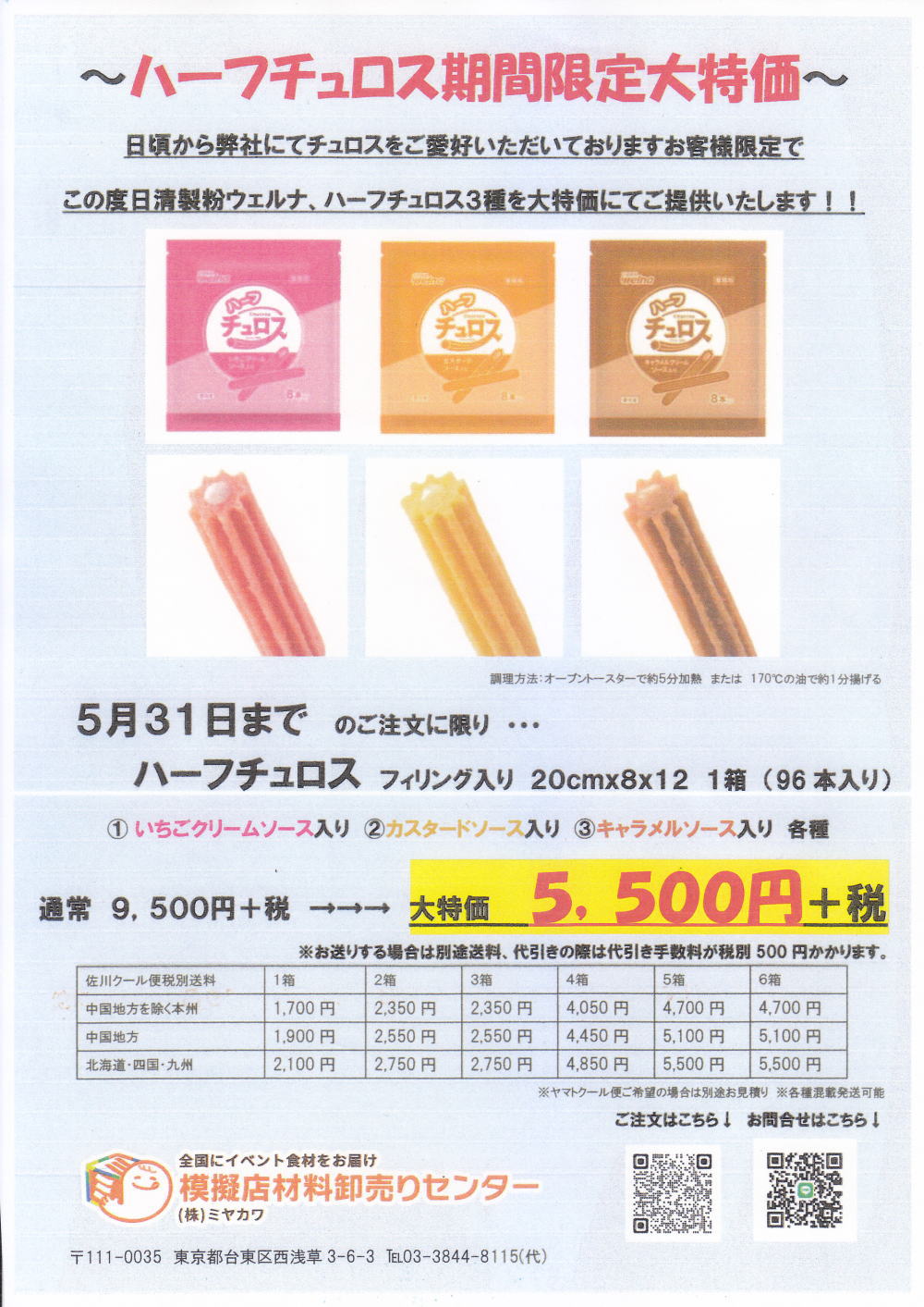 従来の40㎝チュロス(シナモン、ミルク、チョコ)はこちら